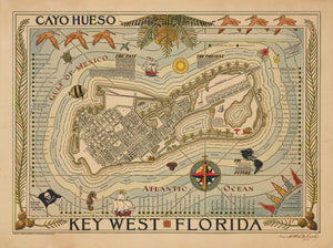 Arthur B. Suchy, the artist behind this map, was an illustrator based in Ohio known for his colorful and imaginative pictorial maps produced in the mid-20th century. His work often blended cartographic accuracy with decorative, story-rich embellishments that made his maps both informative and highly collectible. Suchy’s style was rooted in the tradition of American pictorial cartography, using humor, symbolism, and historical vignettes to create engaging works of visual storytelling. This Key West map is among his most celebrated pieces, valued for its limited run of prints, aesthetic appeal, and nostalgic portrayal of the island’s heritage.